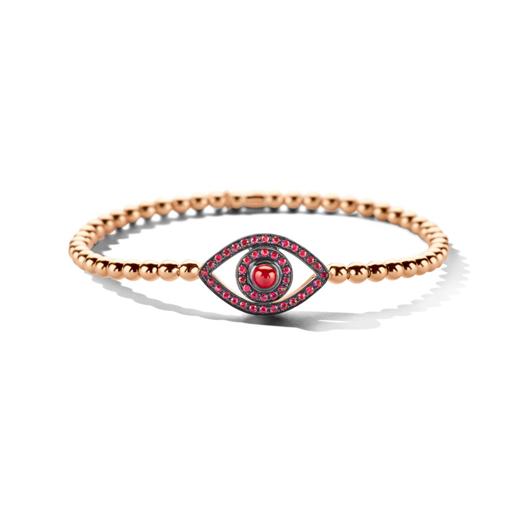 Tresore 18k Rose Gold and Ruby Evil Eye Bracelet