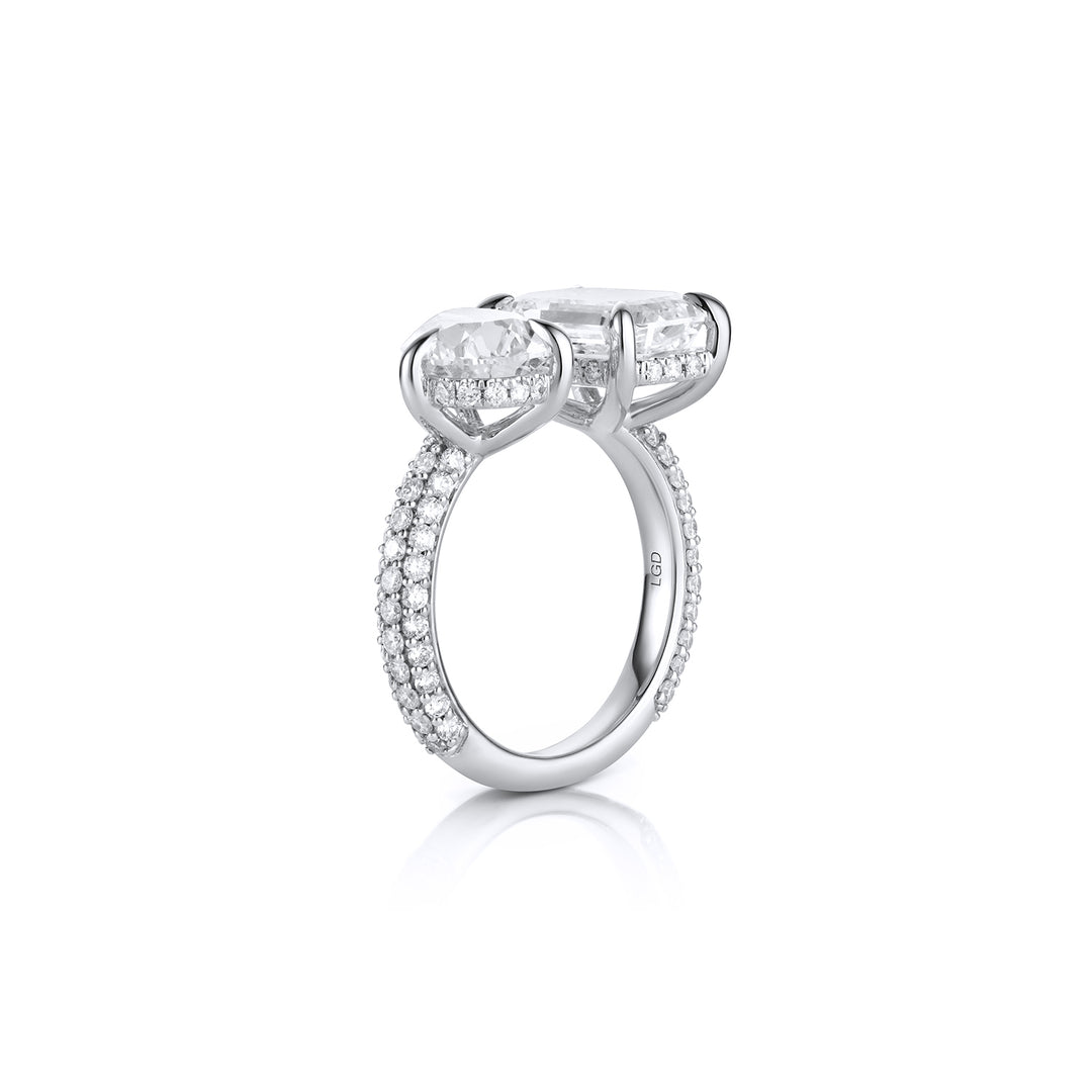 Two-Stone Emerald & Round Lab Diamond Ring
