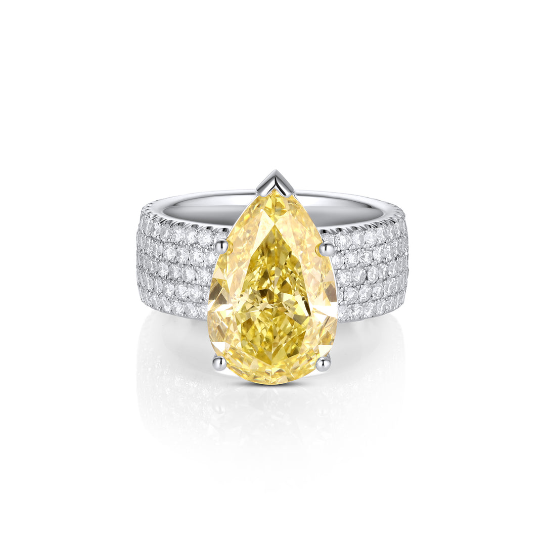 Yellow Pear-Shaped Lab Diamond Ring with Pavé Band